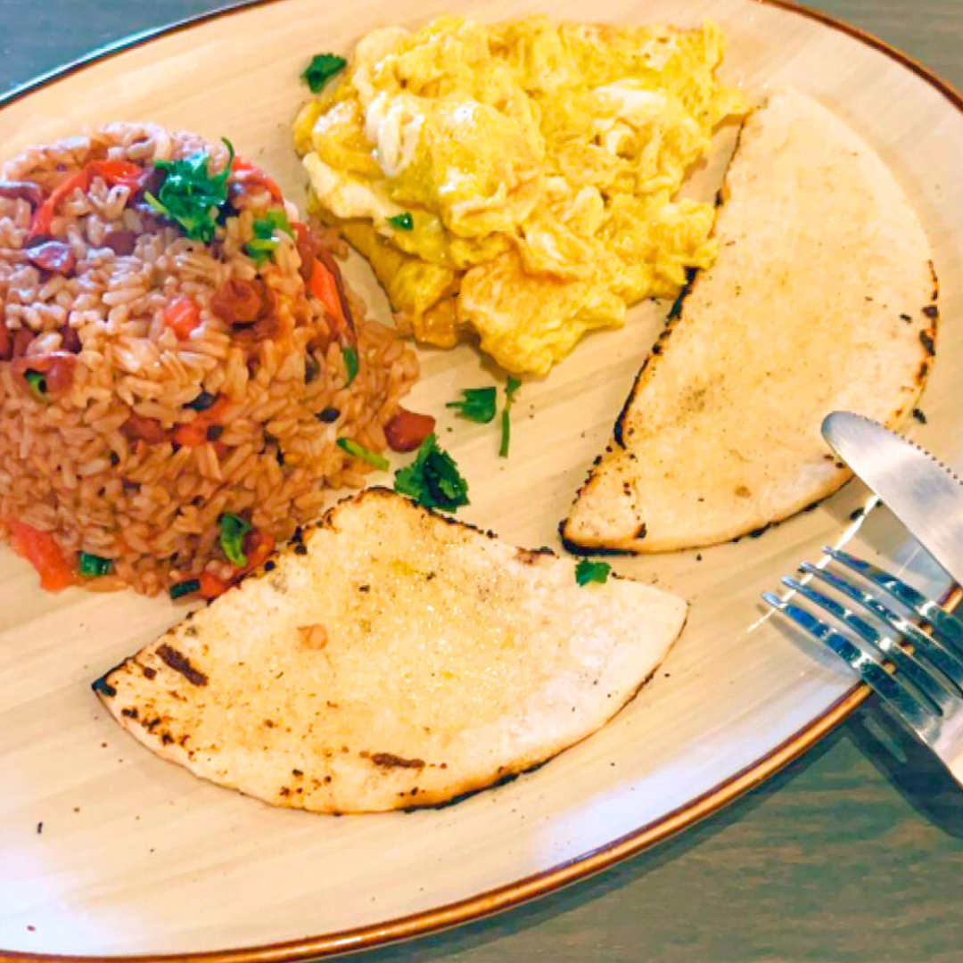 Delight in our Calentados, a scrumptious blend of flavors. Savor the harmonious pairing of white rice and beans, complemented by a white arepa, and topped with your choice of eggs or meats. It's a fulfilling dish that satisfies your cravings!